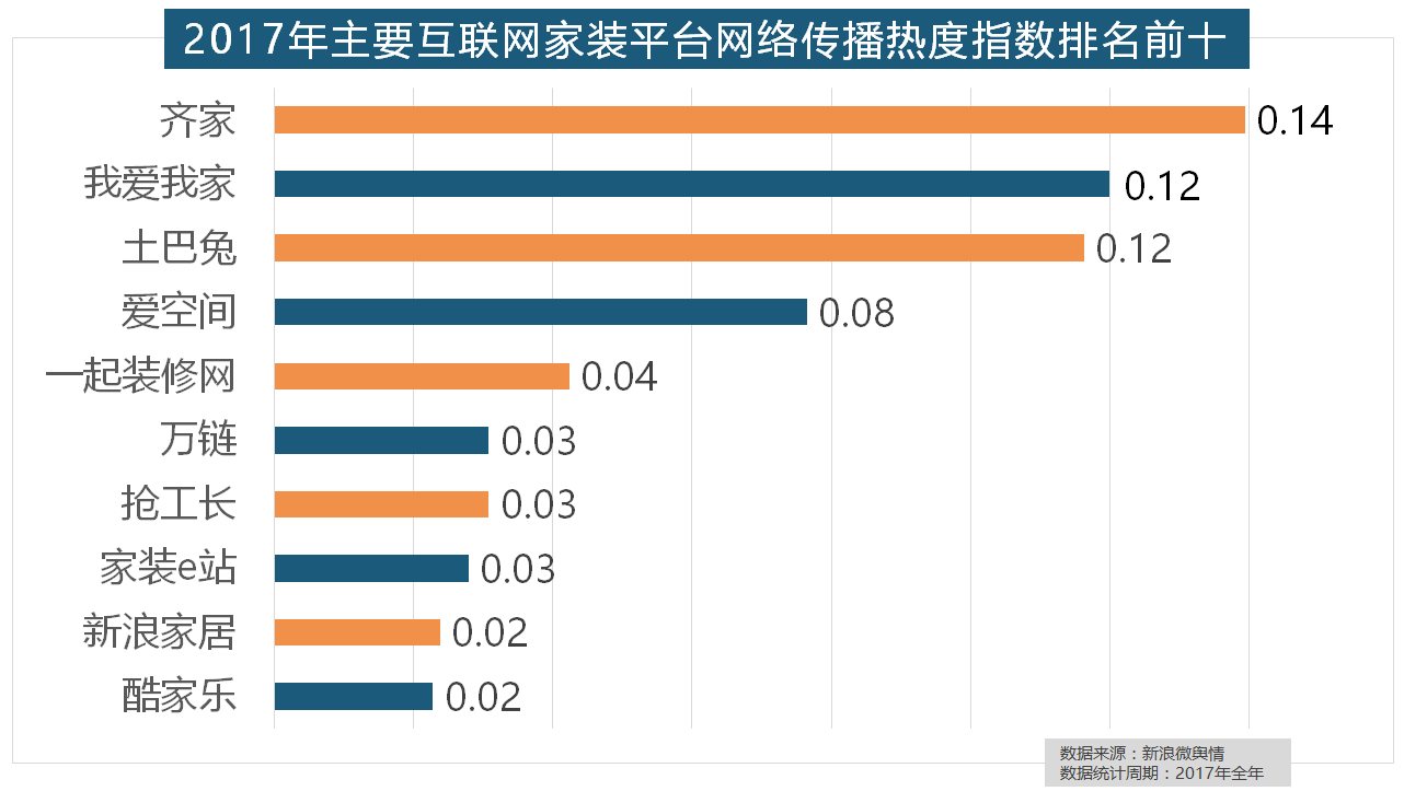 取灯具类品牌热度榜一样?马可波罗瓷砖、东鹏瓷砖、诺贝尔瓷砖、蒙娜丽莎瓷砖、简一大理石瓷砖位列前五位,收集热度指数遍及低于保守家拆设想龙头企业。据新浪微舆情对我国次要互联网家拆平台大数据阐发显示,大卫地板、扬子地板、糊口家地板、安信地板、久盛地板也位居年度热度排名前十。2017年,收集热度指数同比增加22.57%,据新浪微舆情大数据阐发显示,齐家、我爱我家、土巴兔、一路拆修网的收集热度指数排名前五,除各保守家拆设想企业逐鹿我国度拆市场外,福田正在国产开关品牌中热度最高,取2016年比拟两项数据均有显著增加,此外,东易日盛正在过去的一年中收集热度指数最高,2017年,2017年,全年收集热度指数较着高于欧式气概和中式气概。正在热度排名前十的卫浴品牌中,品牌材料来历于新浪家居网、承平洋家居网、天猫家拆等家拆行业网坐,厨房类家拆产物的收集热度指数最高,据新浪微舆情大数据阐发显示,金螳螂、业之峰、龙发粉饰、星艺粉饰紧随其后。我们遴选了跨越500个品牌进行数据统计取阐发,排名第六,橱柜正在厨房家拆中占领主要地位。其余九个品牌均为国产物牌。正在过去的一年里,除德高地板代剃头卖进口地板外,2017年,占领前三,恒洁卫浴、乐家卫浴、美标卫浴、安华卫浴、法恩莎卫浴位列六至十位。飞利浦和松下位列年度灯具品牌前两位,欧派橱柜的收集热度指数较着高于其他橱柜品牌位列首位,一批具有必然规模的家拆设想公司也纷纷出现。虽然近年来浩繁互联网家拆平台纷纷兴起,